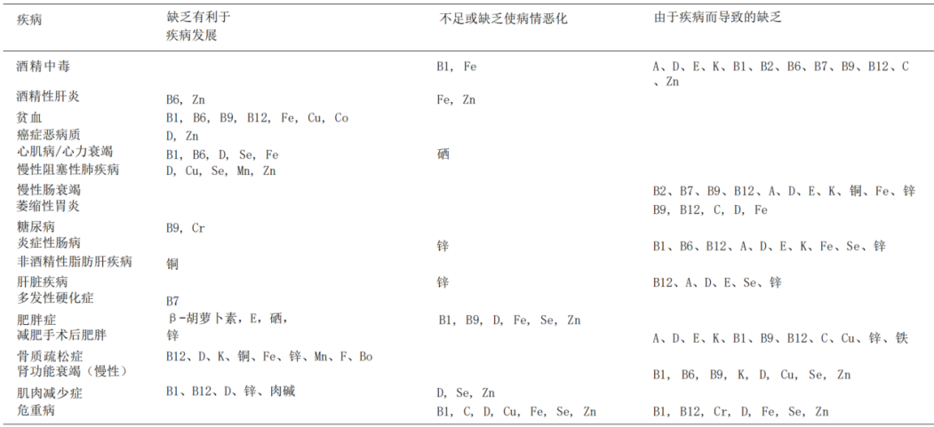 指南通过临床总结指出,不同疾病与特定微量营养素存在高度相关性,例如:肝病/肝衰竭:锌、硒、维生素D缺乏常见以及炎症性肠病:铁、锌、维生素B族缺乏风险显著等等。
